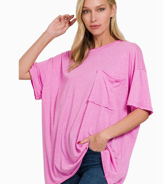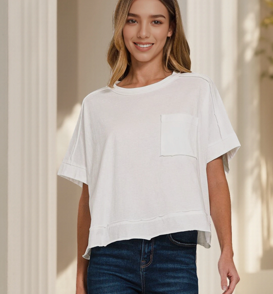 Acid Wash Hi-Low Fleece Pocket Pullover