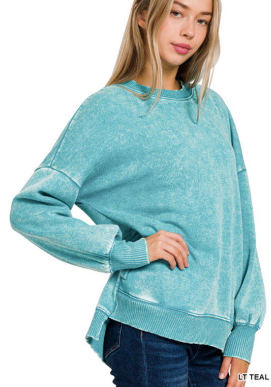 Acid Wash Hi-Low Fleece Pocket Pullover