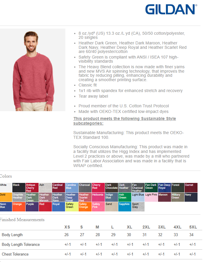 Color Charts with sizing available