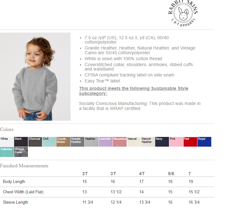 Available in Toddler, Youth and Adult